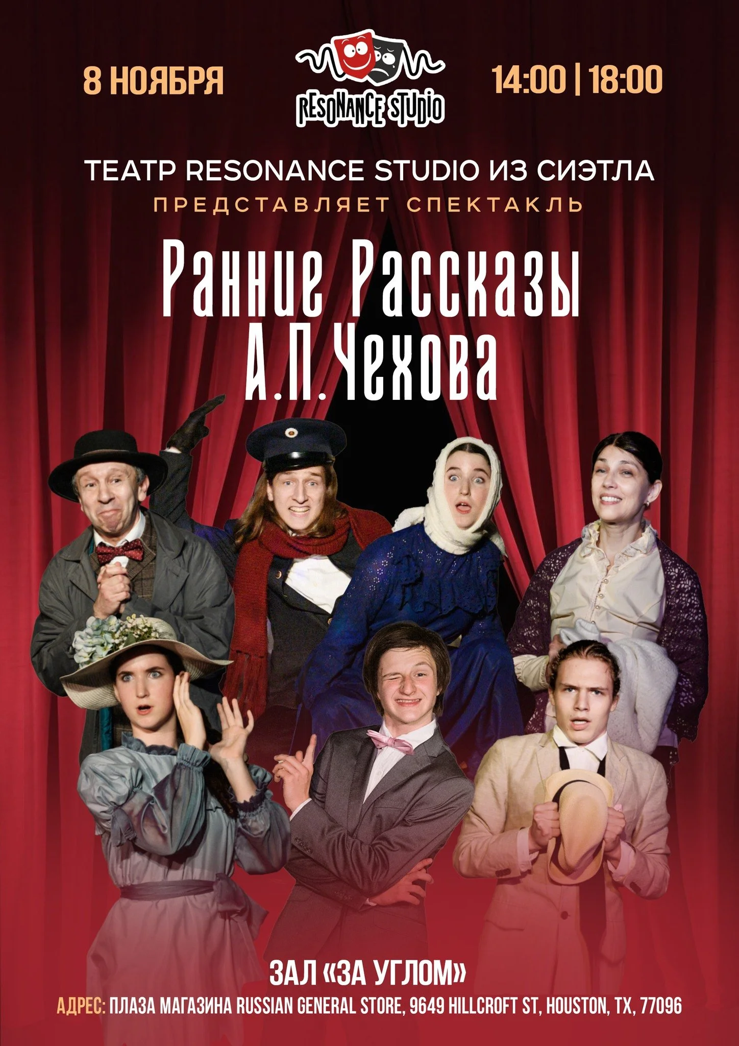 Houston, TXStep back in time and enjoy the charm of Chekhov's early stories brought to life in a refreshed 2025 production. Resonance Studio proudly presents four humorous tales by the great classic, performed with heart by our young talents, supported by experienced adults from our theater group.